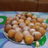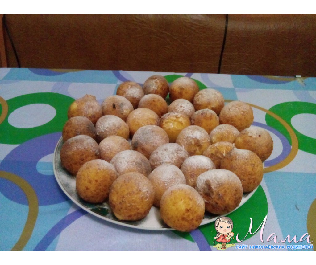 Смешать 250гр творога, 3 яйца, 3 ст.л.сахара, 1/2ч.л.соды погасить уксусом, 2 стакана муки. Заместиь тесто. Формовать мокрыми или жирными руками шарики (внутрь можно класть кусочки фруктов или ягоды) и жарить во фритюре, переворачивая, до румянца (минуты 2-3). складывать на салфетку, чтобы избавиться от лишнего жира. Затем посыпать сахарной пудрой или полить сиропом.