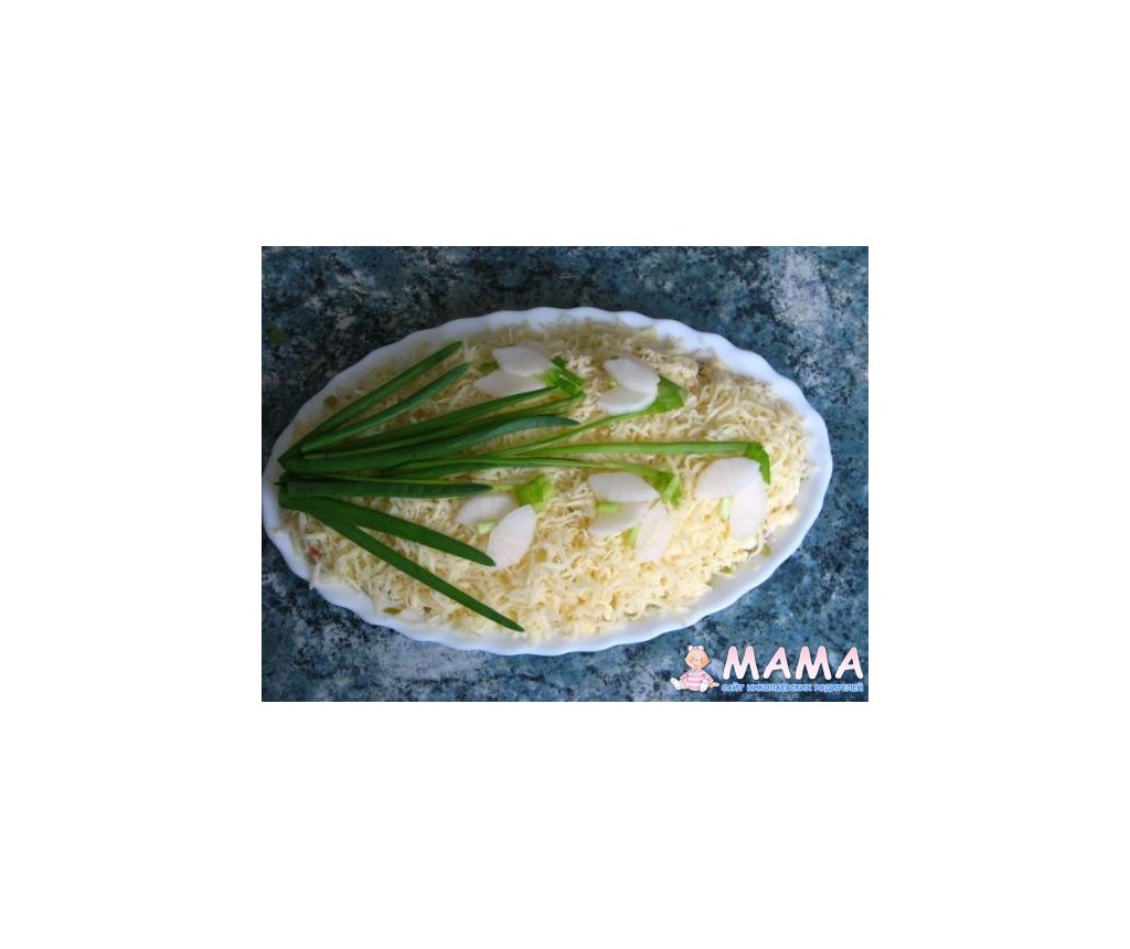 Мне очень понравился такой вариант украшения салата "Мимоза" (из интернета)