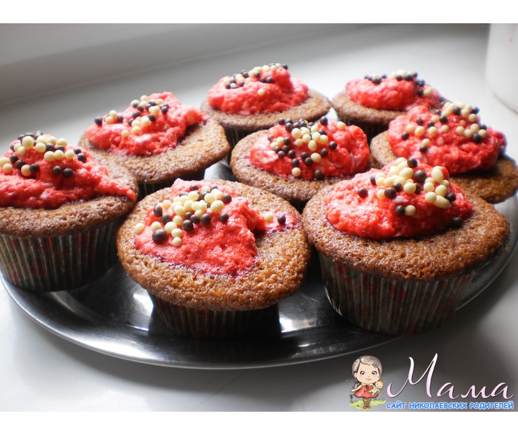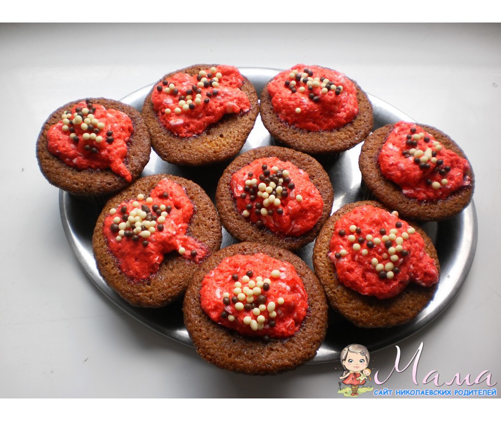 Вчера первый раз попробовала сделать модные нынче кап кейки. Получились очень вкусные и воздушные, но немного жирные. Я просто использовала домашнее масло, в следующий раз кину маргарин - он не такой жирный