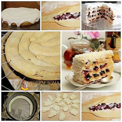 А я без понятия как готовится Монастырская изба) вишни были домашние замороженные. Единственное что в рецепте из такого количества теста получилось 4 коржа, а у меня 3)