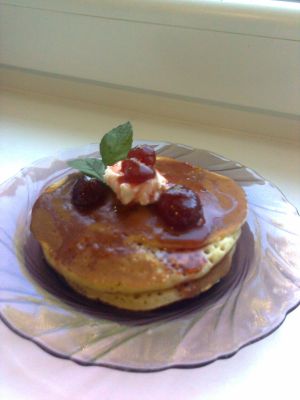 Захотелось чего-то к чайку и сделала на быструю руку вот такие панкейки (блины по-американски)