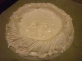 На пергаменте нарисовать круг диаметром 22-24 см, перевернуть и по нарисованному выложить взбитый белок в виде корзинки или кратера вулкана (не знаю, как лучше описать, по задумке автора - это стилизация под балетную пачку)