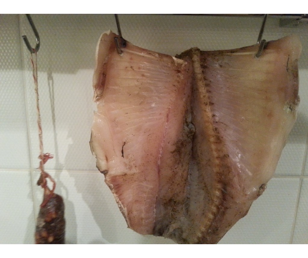 Через сутки набрать кастрюльку водой, литра так на 3, и налить туда грамм 100 9% уксуса, нашу рыбку туда окунуть на часик, потом вынуть и повешать,пусть сохнет.