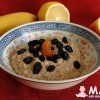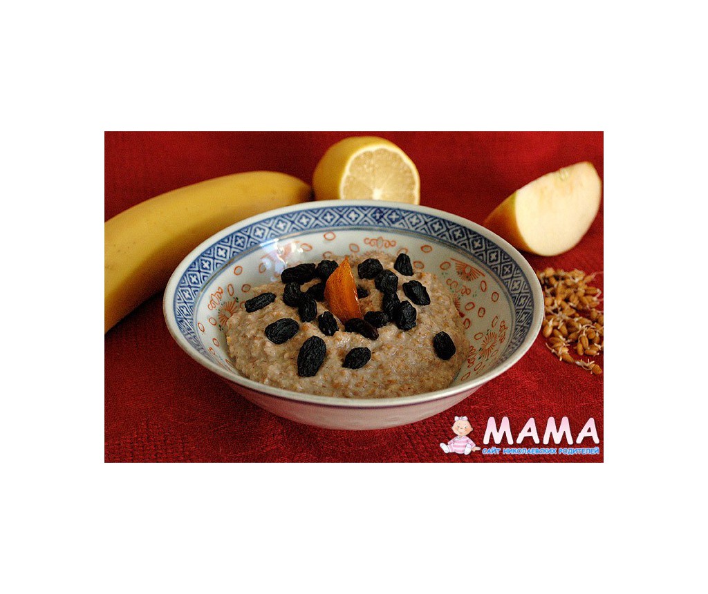 Положить все кроме изюма ингредиенты в блендер и смолоть, чтобы у вас получилась однородная масса. Если каша слишком густая, добавьте несколько столовых ложек воды, но не больше. Выложить кашу в тарелку и посыпать сверху изюмом. Каша получается достаточно сладкой, поэтому не стоит ее сахарить или кушать ее со сладкими фруктами, например, бананом.