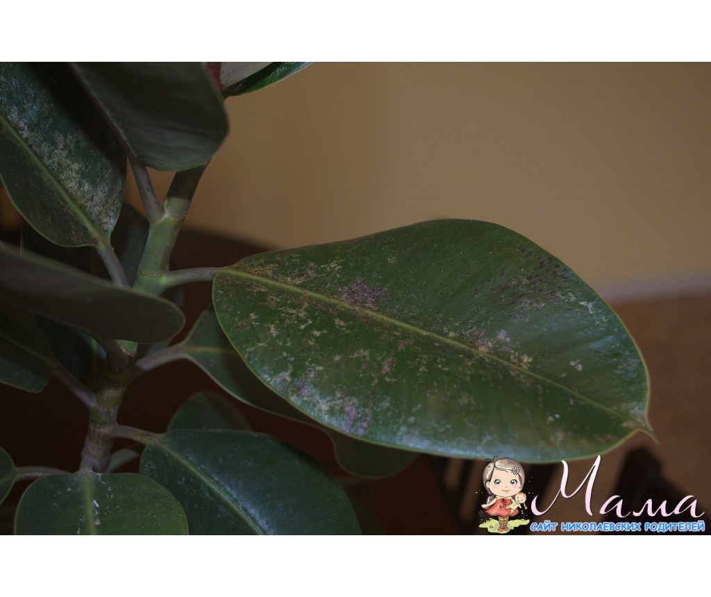 Аня, здравствуйте. На фикусе у Вас клещ, хотя фикус каучуконосный крайне редко повреждается именно им. Для начала тщательно вымойте листья с мылом. Потом обработайте"Актофитом" (на 0.5 л. 1-2 мл. раствора и опрыскать). И так 3 раза с интервалом в 7 дней.Было бы хорош, чтобы Вы еще облучи растение 1-2 минуты в день синей лампой(если она у Вас есть). Обязательно проверьте все растение-клещ очень заразен. И опрыскайте ВСЕ растения стоящие рядом!