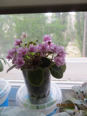 18 May 2014 У меня вот очередные зацвели :) Это Голубой Туман и Зеленая Роза. А последние две фотки - демонстрация фитиля и результат фитильного полива :)