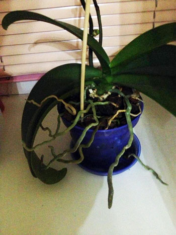 но есть же какие-то пределы, у меня орхидея большая с массивными листьями, корней уже много сверху субстрата, что нужно ждать пока они высохнут или горшок перевернется?
