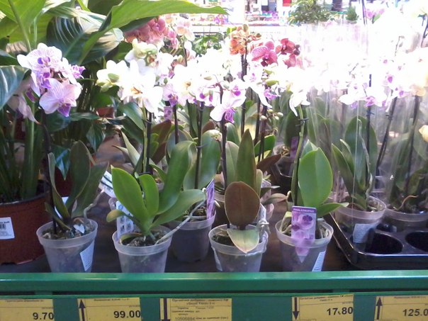 Девочки звонила в оранжирею Ш.Б. орхи 1ветка-168грн высота до 1м, 2ветки-182грн-188грн высота 60-70см, 3ветки-225грн сказали, что большой осартимент хочу сездить посматреть, муж говорит ну купи себе от меня какую хочиш орхидею.