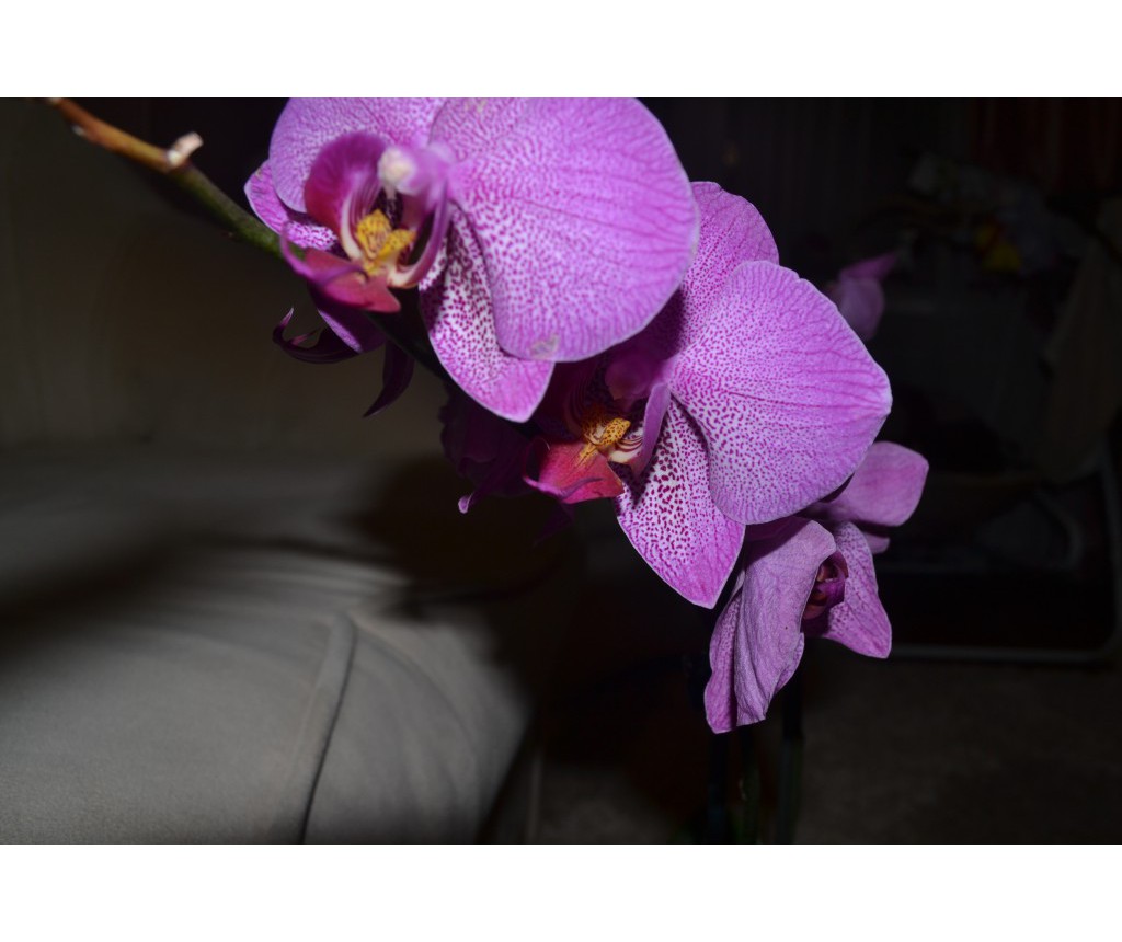 У орхи 2 цветоноса, но она скоро отцветет. Цветы красивые, насыщенные в мелкую канапушку.