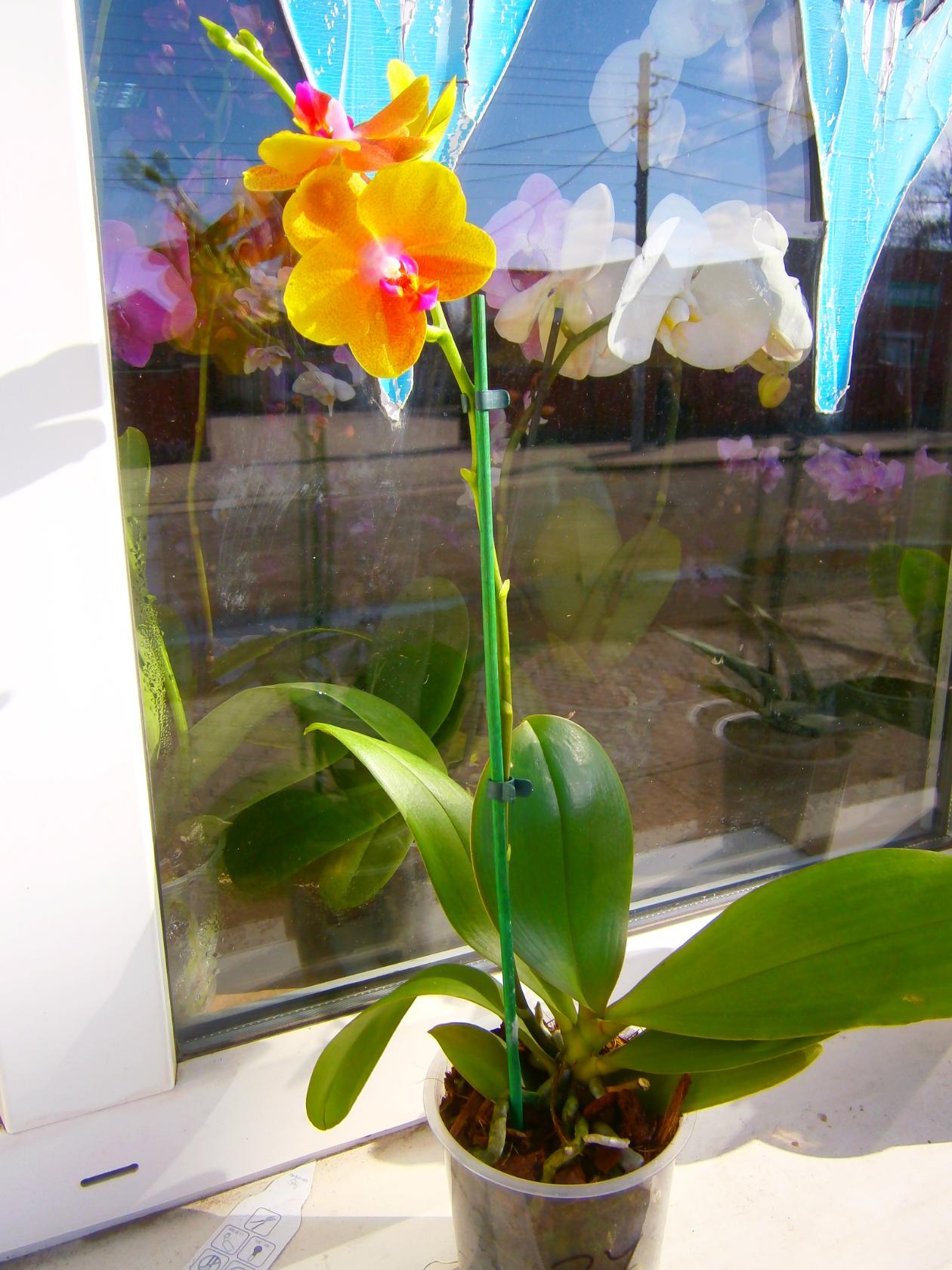 Только думаю,что надо ее как-то подвязать что ли,а то немного не эстетично она выглядит. Сфоткаю завтра,может подскажите,что именно сделать. Я вообще не цветовод,не сильно люблю цветы,но они чего-то растут у меня хорошо. Поэтому всех тонкостей взращивания орхидей,впрочем как и других цветов,не знаю.