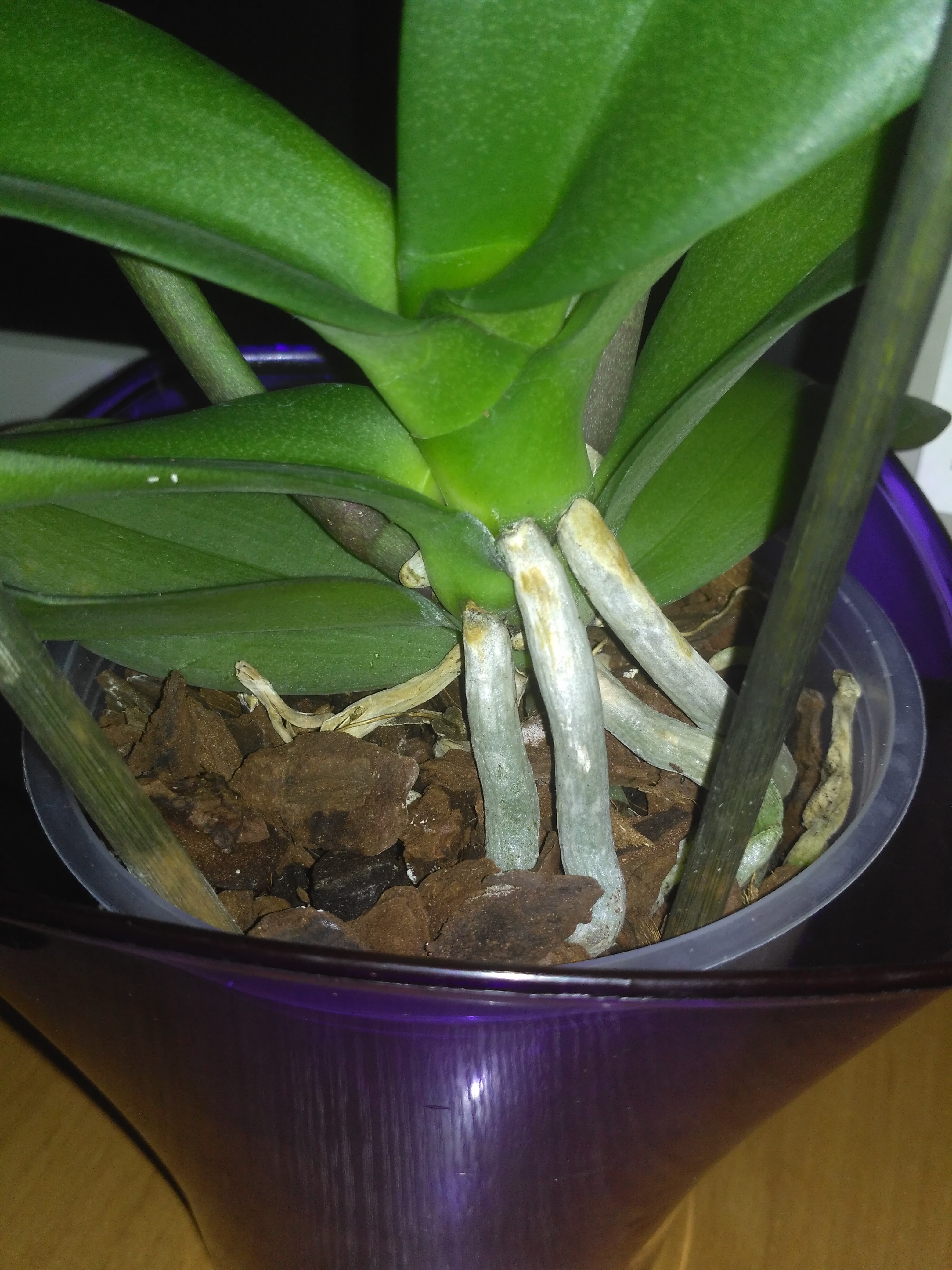 Так... в горшке кора. Совсем сухая, несмотря на то, что я поливала несколько дней назад. И оказалось, что половина корней уже высохшая, а те, что живые, явно слабоваты уже. Возможно, ее еще в магазине засушили. Кажется, ее нужно срочно замочить. Ей плохо не будет? Обычные растения нельзя сильно заливать после нечаянной пересушки.