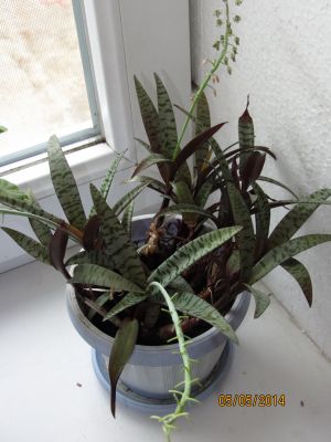 Вредителей не видно никаких, листья чистые, в земле тоже вроде никого не завелось.. Сильно пошел в рост сейчас, много новых побегов, много цветоносов, а старые листья сохнут...