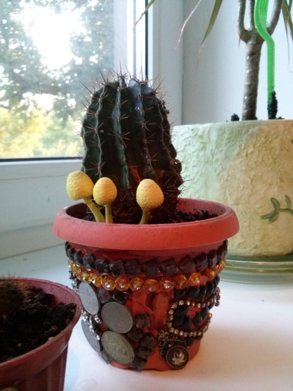 Встретилась вот такая фотка в сети. Рядом с кактусом грибочки выросли. Да фиг с ними, грибочками, вы посмотрите, какой горшочек! ![]()