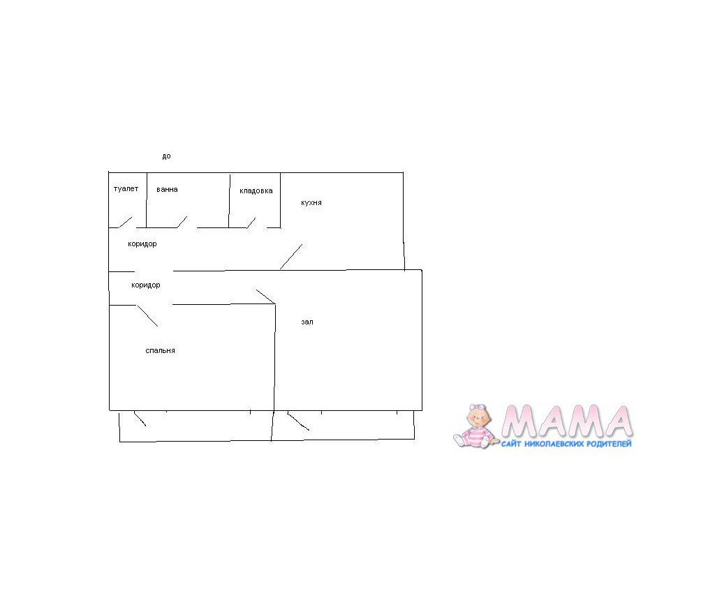 забыла нарисовать... Основная идея была - увеличить детскую, и перенести ее из детской в зал... и избавится от уродского проходного зала, который был...