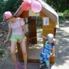 А мы закончили песочницу. Стоит такая, нарядная, накрытая и дождь ее полощет, дети хороводы водят потому что мамки в песок под дождем не пускают....