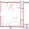 при входе: кушетка, "кофейный" столик, шкаф книжный, в нише полки, ну и то что сейчас называется "мастерская" (стол рабочий, стол компьютерный, усилок) - стоит у стены напротив входа.