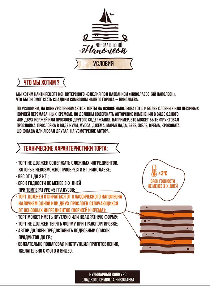 Стартовал кулинарный конкурс "Николаевский Наполеон" в ходе которого выберут торт, который станет символом нашего города! Теперь и нам будет чем порадовать гостей и туристовay