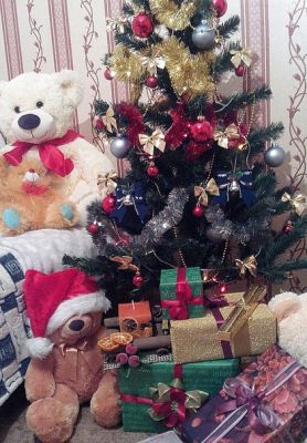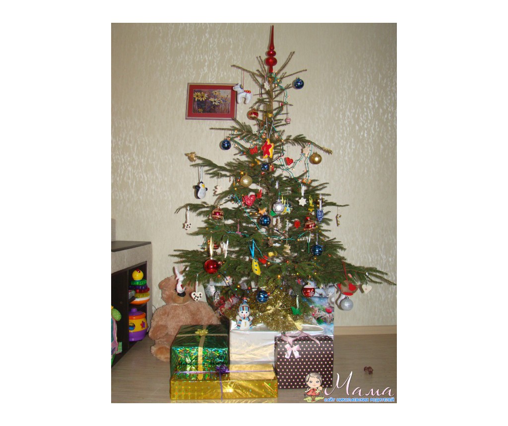 Вот и наша елочка. На ней толком нет шаров, дочь к ним неравнодушна. Украшали игрушками из фетра и соленого теста.