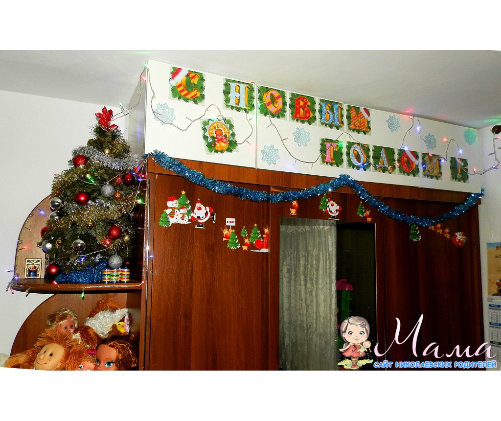 Так как комната у нас маленькая, а ребенка - уже ходячая шкода, то было принято решение купить маленькую наборную елку и поставить на полку шкафа.