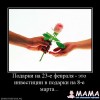 наа 23 не знаю ещё чт подарю...а вот на 8-е марта хочу мои любимые цветы(фрезия)..и красивое нижнее бельё))