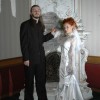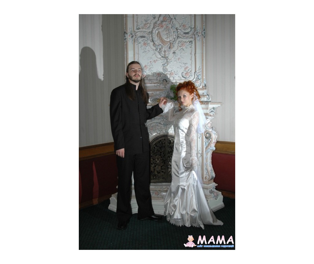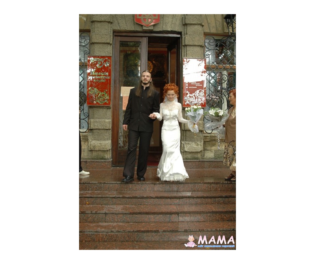 апасиба Так приятно! У меня с платьем, как обычно, драматическая история связана - все салоны, как один, старались мне рассказать, что пышный тортик - мой вариант. А я, соответственно, никак не хотела соглашаться на тортик - с моим ростом 150 в прыжке это самоубийство. А 6 лет назад почему-то как раз прямых платьев не было вообще в наличии, одни кринолинные. В итоге платье пришлось шить. Вдвоем придумывали и прорисовывали эскиз, отталкиваясь от платьев образца 1890-х - с турнюром сзади. Эта же мода определила внешний вид спереди - полностью закрытые плечи, руки и спина, прямая "колонна" с полурыбкой от колена, небольшой шлейф сзади. На турнюре - шелковые розы ручной работы (вот там, на попе ) и на таких же розах крепилась вуаль, по семейной традиции - мамина. В итоге внешний вид платья настолько "выбил" все мужские варианты костюма жениха, что ему буквально за неделю тоже костюм пришлось шить Тоже в соответствии со стилем того времени - стилизация военного френча. Главное, что успели - день до росписи оставался...