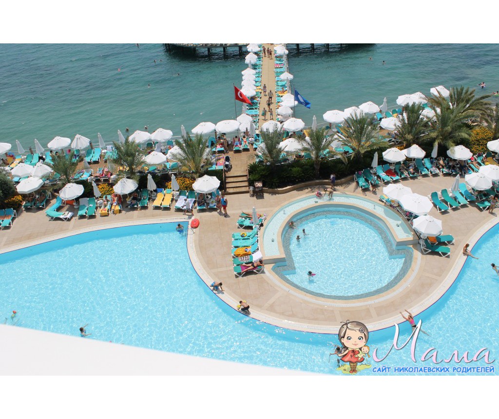 Отдыхали мы в Vikingen Quality Resort & Spa. Номер был в центре отеля, с видом на море(но нужно заранее оплатить вид на море). Четыре бассейна, разных по глубине. Взрослый 1,40 .  Много пальм и красивых газонов, шезлонгов всем хватало. Пять баров, в которых в разное время можно брать шампанское, мохито и т.д.