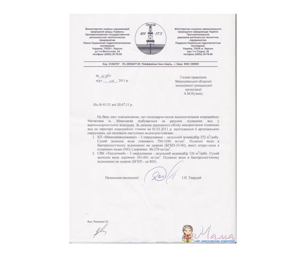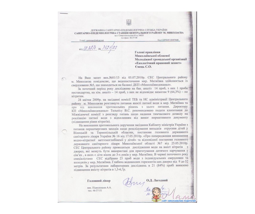 я скан выложила как раз результатов обследования воды в Матвеевке, сейчас попробую выложить более читаемый вариант