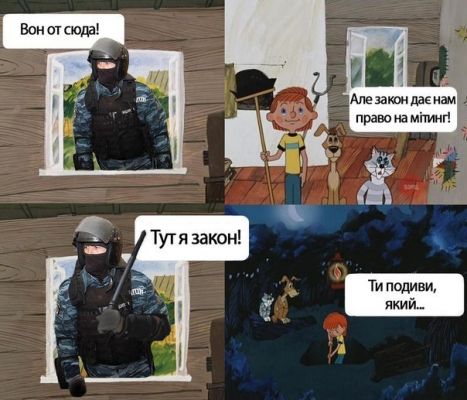 9. «Втопити» тітушок у проявах народної любові (затягати до дискусій про справедливість, пригостити чаєм та бутербродами, пояснювати, що ті, хто їх найняв, — бандюки, узурпатори, бєспрєдєльщікі та погані люди).