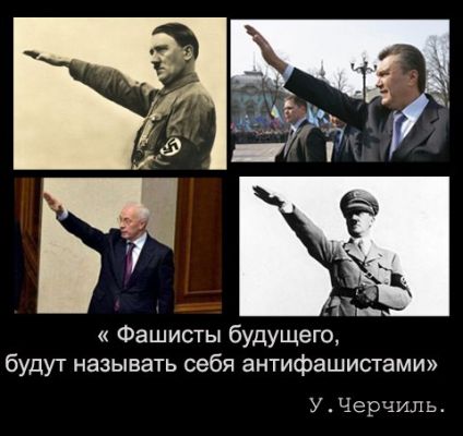 Давайте, будем честными - это просто неудачные фото людей. Думаю, что когда Азаров и Янукович подняли так руки, они не имели ввиду, то что хотят преподнести авторы этой картинки.