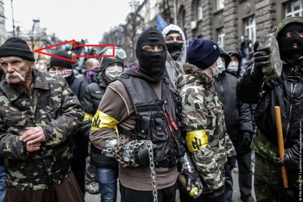 Такая же символика была на желтых повязках у ребят с майдана. В интернете точно есть их фото. Не могу наити, нет времени (дочка сильно заболела, температура:( )