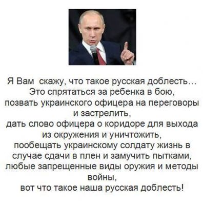 Господа российские агрессоры, ваш Главковерх вас тупо подставил, за Донбасс вам не будут медальки вешать, как за Крым. Наоборот: поменяйся у Путина настроение или сменись в РФ власть, и вы – военные преступники в собственной стране.