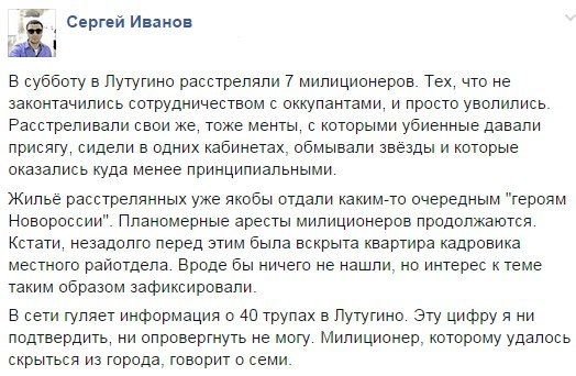 25 September 2014 . Один из его бывших сотрудников напился стекломоя и пошёл воевать за ДНР. Звонит наш беженец сегодня узнать как дела этому кренделю. Через минуту разговора зовёт всех и включает громкую связь. Далее вещает боец Новососсии: говорит я блин не знаю кто защищает Донецкий аэропорт, но мы их три месяца выбить не можем. Пробовали штурмовать - нам таких вломили - мы отошли. Начали накрывать градами - они ныряют в подземные коллектора канализации. После обстрела мы наступать, они выныривают и опять нам дают просраться. Решили коллектора залить стоками канализации. Зафигачили градами - они под землю - мы заливаем коллектора. И типа захватываем территорию аэропорта.