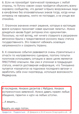 а бред ,на счёт присоединения Крыма к России - нужно прекратить,но мирными методами!