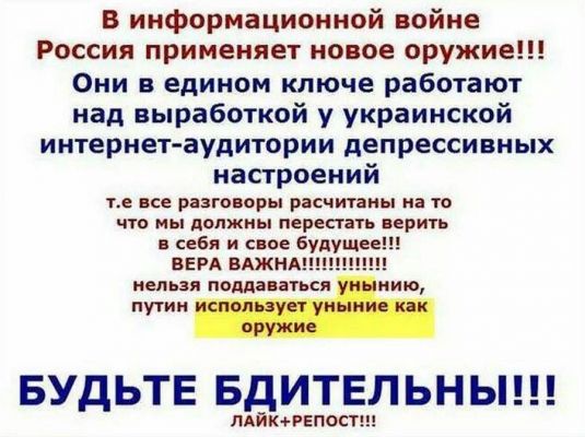 Ира, у нас - мамский форум. Этим все сказано.Никому не нужно - переубеждать. Нужно - устроить панику, спровоцировать. Те фото и текст, которые постило Зозуля, за несколько часов до этого висели уже на нескольких антимайдановских пабликах с ценными указаниями: "Массовый перепост на женских и материнских форумах Юга, Востока и Центра Украины! Добавляйте текста от себя, пусть забирают своих живых, пока не забрали трупы - пишите в этом направлении".