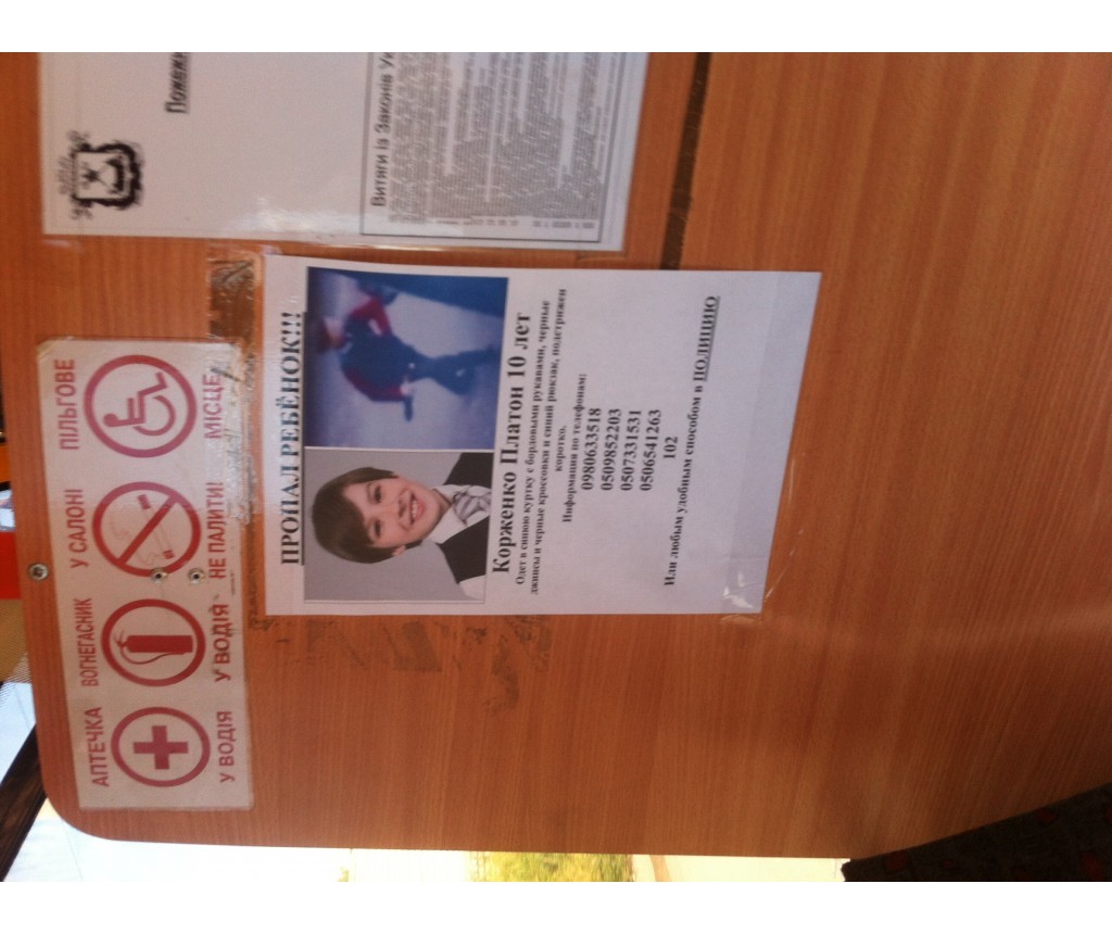 Срочно!!! Пропал ребенок!!! Зовут Платон, 10 лет. Одет: куртка трикотажная бордовая с синими рукавами. Синий школьный рюкзак с салатовыми вставками. Черные джинсы, черные кросовки. Последний раз был на связи в 15.00, телефон отключен. У кого есть информация сообщите по телефону 0506541263. Пропал в районе пл. Победы в 13.30.
