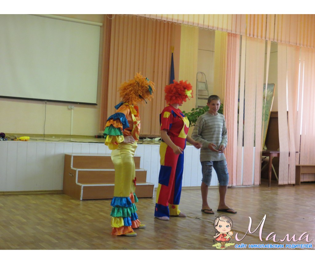 Були дві клоунеси, які проводили всілякі конкурси та веселі старти, загадували загадки та водили хороводи. Був ще злий персонаж - Бяка, що захопила зненацька чарівний велетенський олівець, призначений для запису днів народження у Книгу Дитинства. Всі діти гуртом визволяли цей олівець - від наймолодшої групи дитсадочка до десятикласників)))