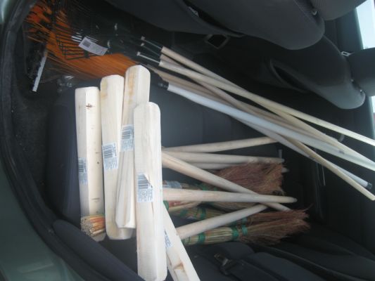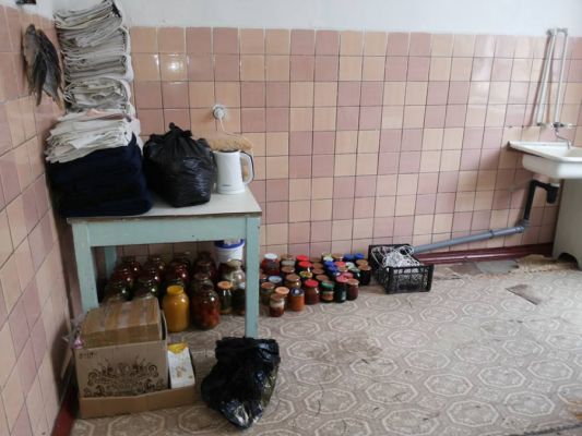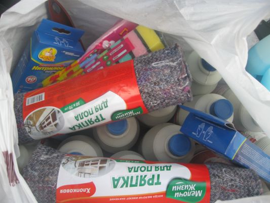 Еще доставили то, что девочки передали - 2 веника, 3 подушки, консервацию, ведро, утюг.