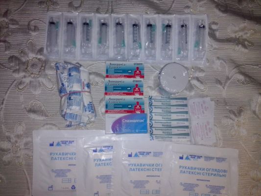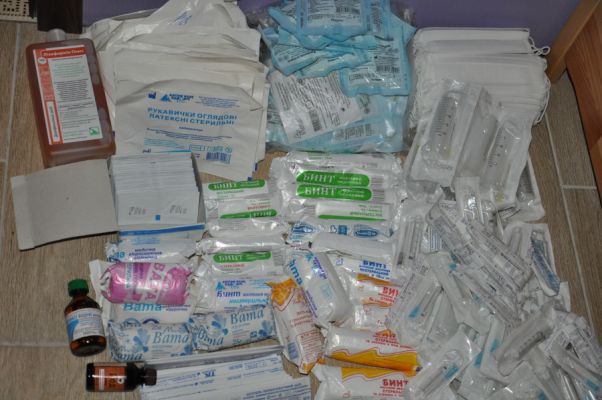 Лизоформин(медики знают зачем он,его цена за бутылку около 300 грн,может пригодиться) нашла 1 бутылку,стерильные перчатки 80-90 пар,стирильные бинты немного,вата, маски, спиртовые салфетки,шприцы.Есть еще шпателя деревянные для горла,но они наверное не нужны?Вобщем как то так)) Готова передать свою "находку" в нужные руки))