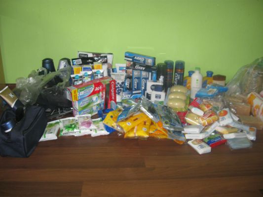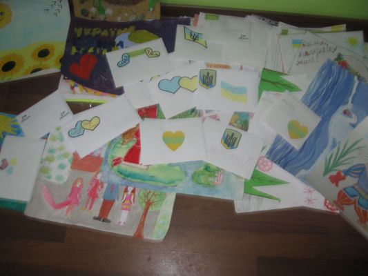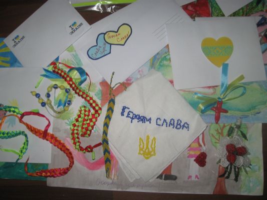 Все что на фото, мне сегодня передали в 58-ой школе, в Академии Детского Творчества. Все это собрали учителя, а письма и рисунки - ученики этой школы.