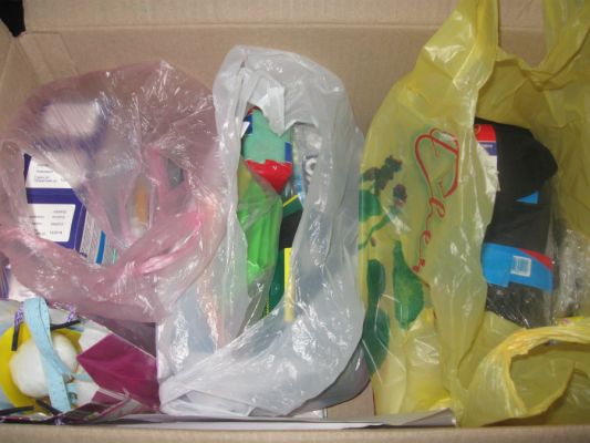 Сегодня опять порадовала Александровка - Пенелопа принесла коробку с детскими поделками, рисунками, носками, медикаментами, мыльно-рыльным. Спасибо огромное!!!