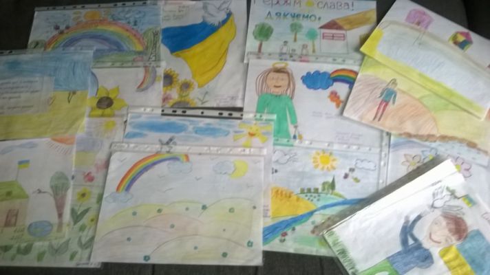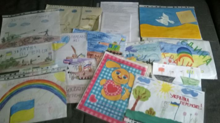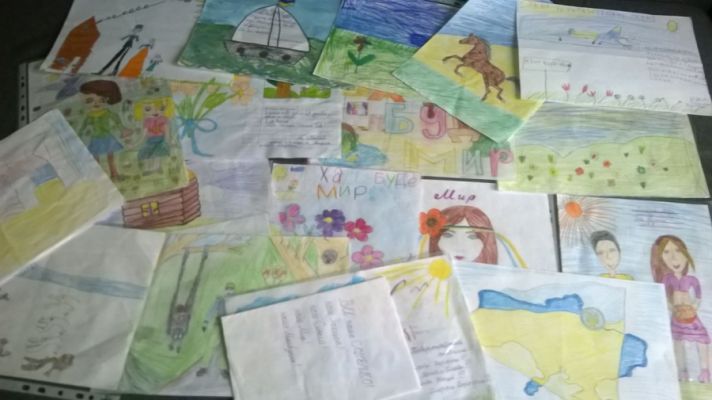 Рисунки детские вчера ночью уже уехали в зону АТО, будут там радовать наших парней.