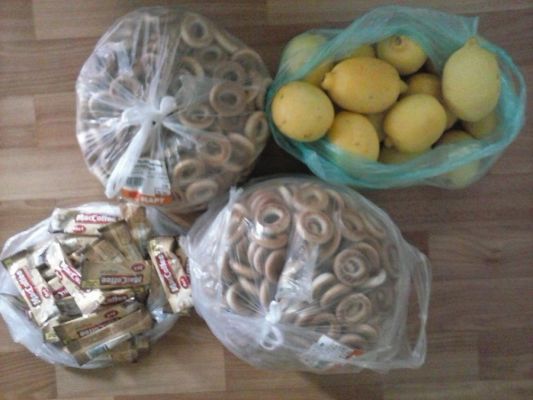 Пришла посылочка от Оли с кидстафа: 4 консервы, теплющие носочки и термобелье!!! Спасибо, Олечка, ты-супер! Хоть несколько мальчишек будут согреты!!! |