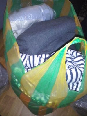 - из куска черного флиса получилось 6 баффов и осталось немного на плед