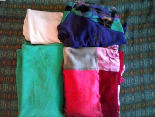 Кстати, у меня собрался пакетик с кусочками ткани, из которых не получится вырезать деталь для пледа, но их можно смело использовать на поделки. Если кому-то нужно, пишите. Я оставляла кусочки только очень хорошего качества, так что выбрать будет из чего. |