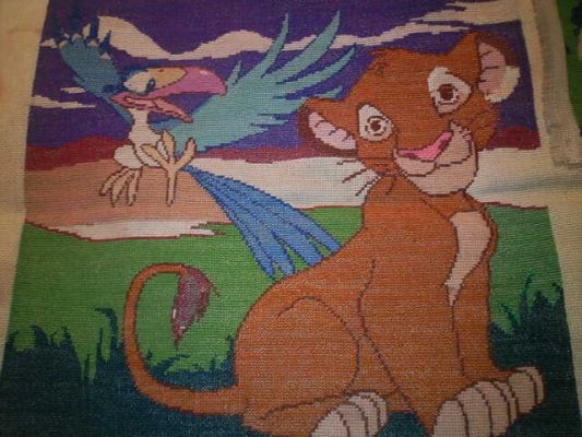 Львенок 31*28.5 см. Есть еще подсолнухи с божьей коровкой, там размер 19*21 см. В продаже таких нет, ну у нас так точно. Только под заказ