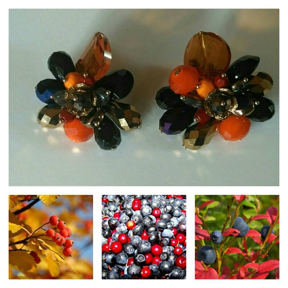 Коли вже осипалося листя на деревах, деякі з них ще сяють прикрашені яскравими помаранчевими ягодами. Горобиночка. Діаметр 4 см, кліпси. Старт 80 грн.