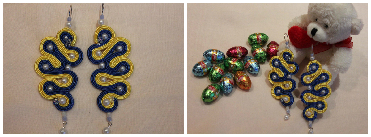 Ці сережки вироблені у стилі сутажна вишивка. Такий вид творчості зустрічається не дуже часто, тому зверніть на них увагу, будь-ласка. Довжина 11 см. Старт 40 грн.