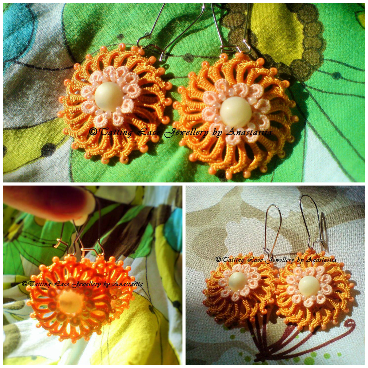 Очаровательные серьги выполнены в технике фриволите из шелковых и хлопковых нитей, с вплетением чешского бисера и жемчуга. Пронизанные солнцем и светом, они станут отличным дополнением к неповторимому образу. Размер: длина со швензой 6 см, диаметр солнышка 3.5 см.