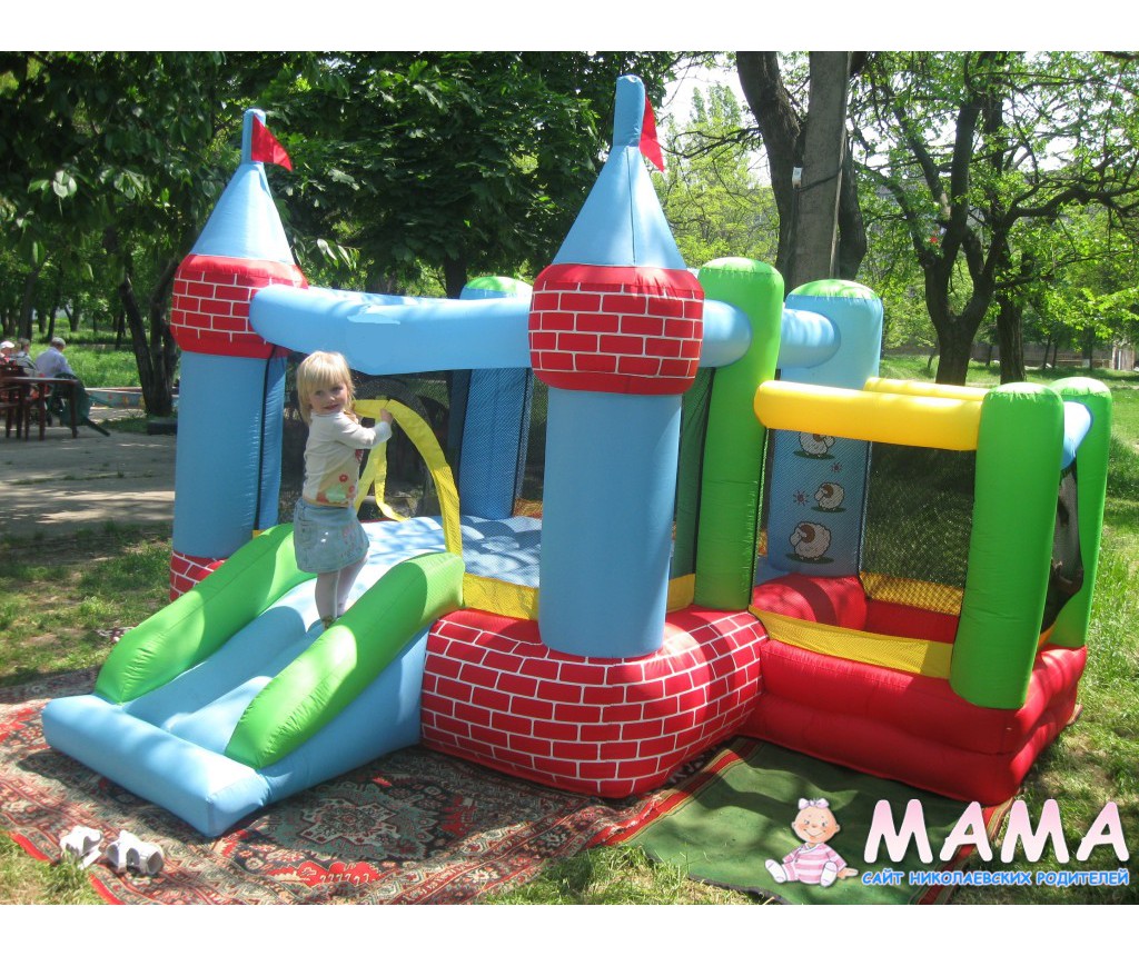 на него максимальная нагрузка 140 кг, для детей от года до 8 лет, поэтому небольшими группами можно пускать прыгать..
