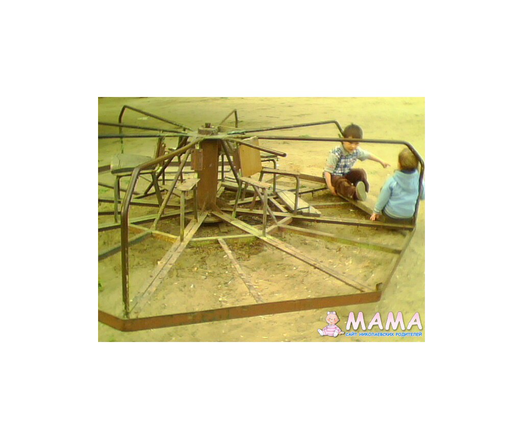 Карусель оставила на память о себе только крепление, грибок и замечательная большая песочница под ним вместо песка наполненная сигаретными окурками произвели на меня неизгладимое впечатление. Еще один неопознанный штырек на фото не попал - вероятно там качели-балансир стояли. Я так понимаю, все что могли родители покрасили, но для реанимации чудесной площадки требуется вмешательство слесарей, сварщиков и столяров, да и песочек завезти не помешает